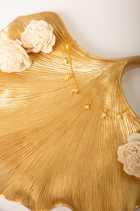 Heavenly Realms Moon & Stars Drop Choker Necklace, 18k Gold, CZ Diamond