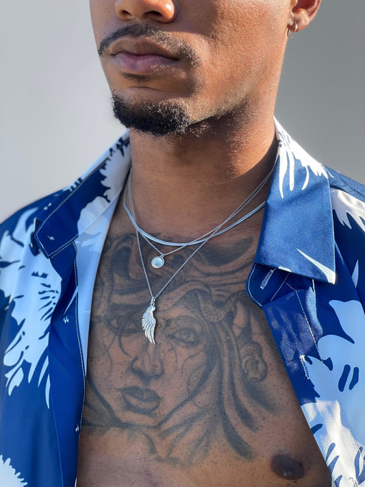 Seed of Life Choker/Y-Style Lariat, Reversible Necklace, White Rhodium