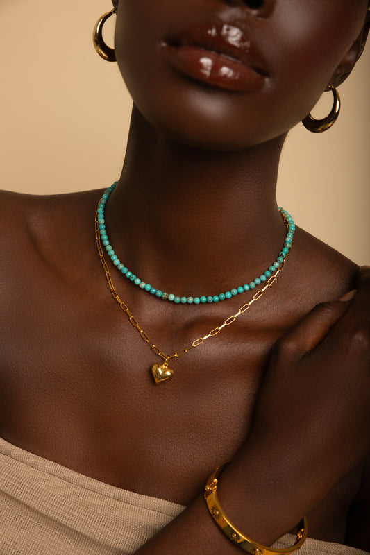 Turquoise & Gold Choker Necklace, Creativity and Confidence Amplifier