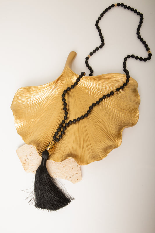 Energy Protection Black Onyx Repousse Mala, Rose Gold Plated