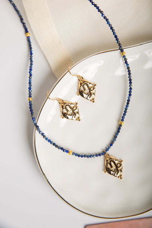 Capricorn Gemstone Choker Necklace, Lapis Lazuli, 18k Gold Plated