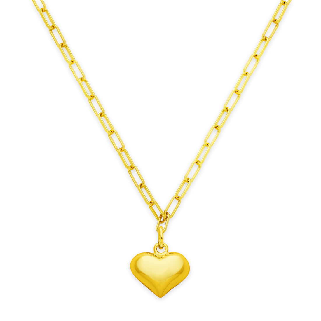Puffy Heart Paperclip Chain Necklace, 18k Gold Over Sterling Silver