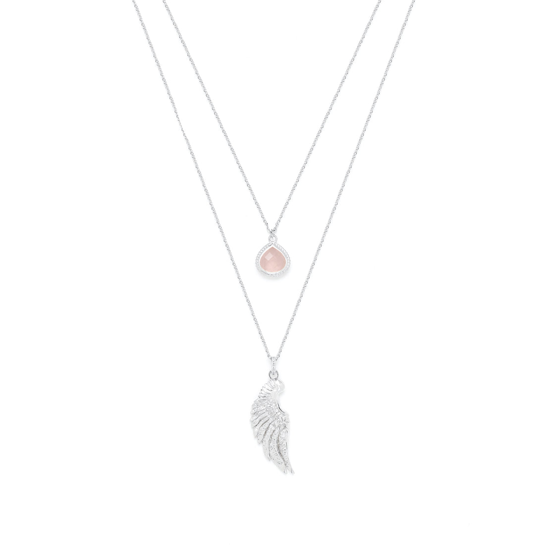 ARCHANGEL CHAMUEL Angel Of Love Necklace, Rose Quartz, White Rhodium
