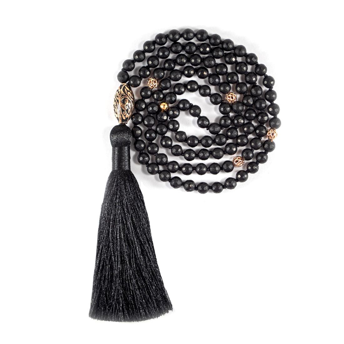 Energy Protection Black Onyx Repousse Mala, Rose Gold Plated