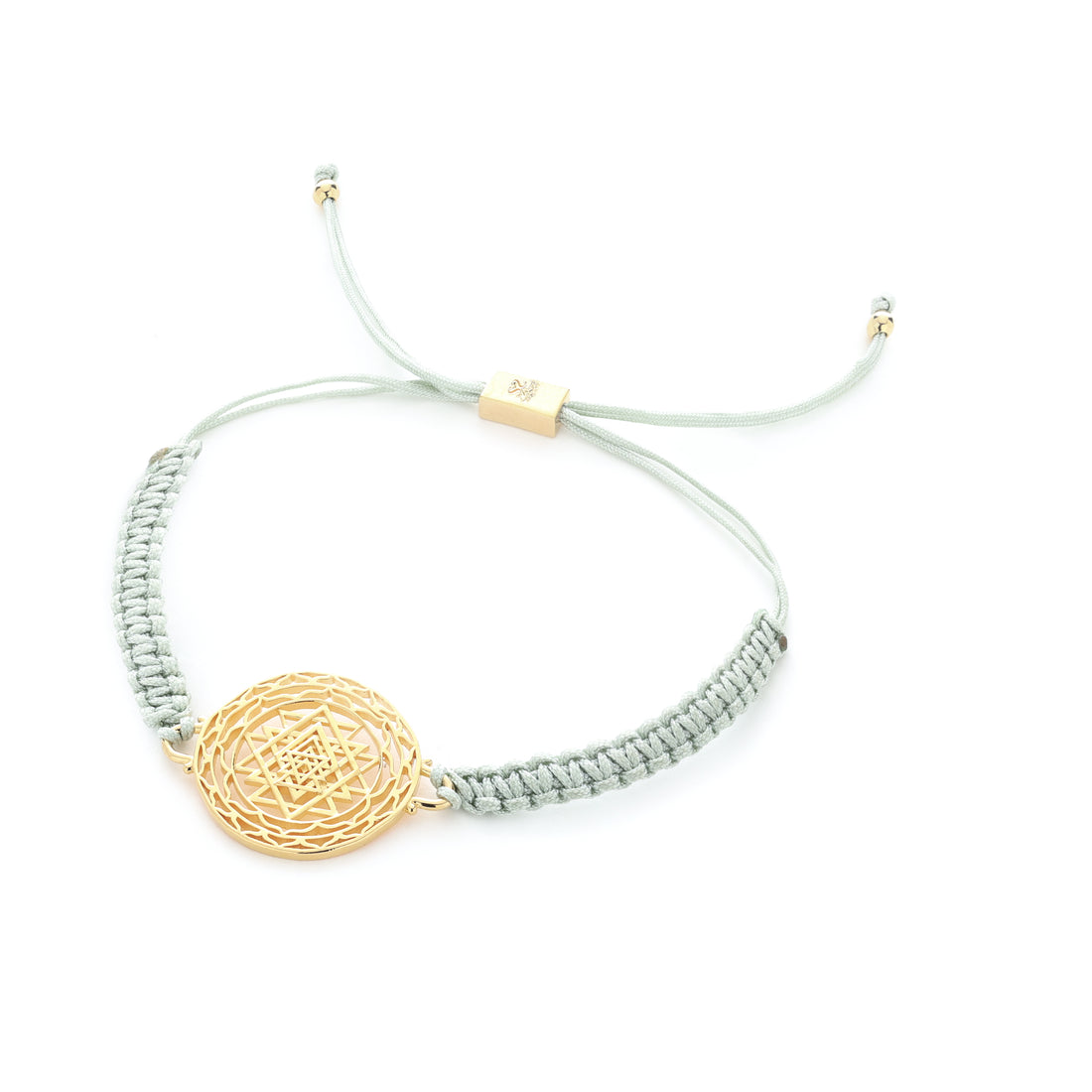 Luck and Prosperity Sri Yantra Friendship Bracelet, 18k Gold, Sage Green, One Size