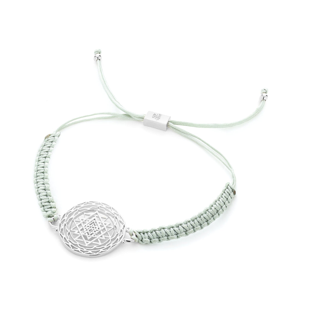 Luck and Prosperity Sri Yantra Friendship Bracelet, White Rhodium, Sage Green, One Size