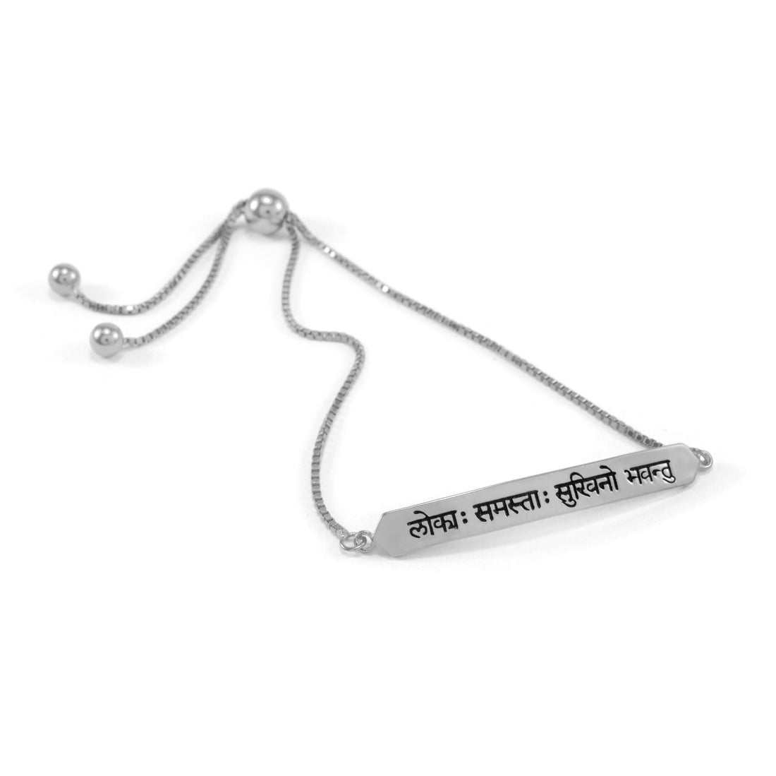 Sanskrit Chant "May All Beings Be Happy & Free Box Chain Bracelet, White Rhodium