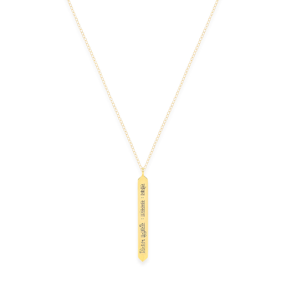 Sanskrit Chant "May All Beings Be Happy & Free" 18K Gold Bar Necklace