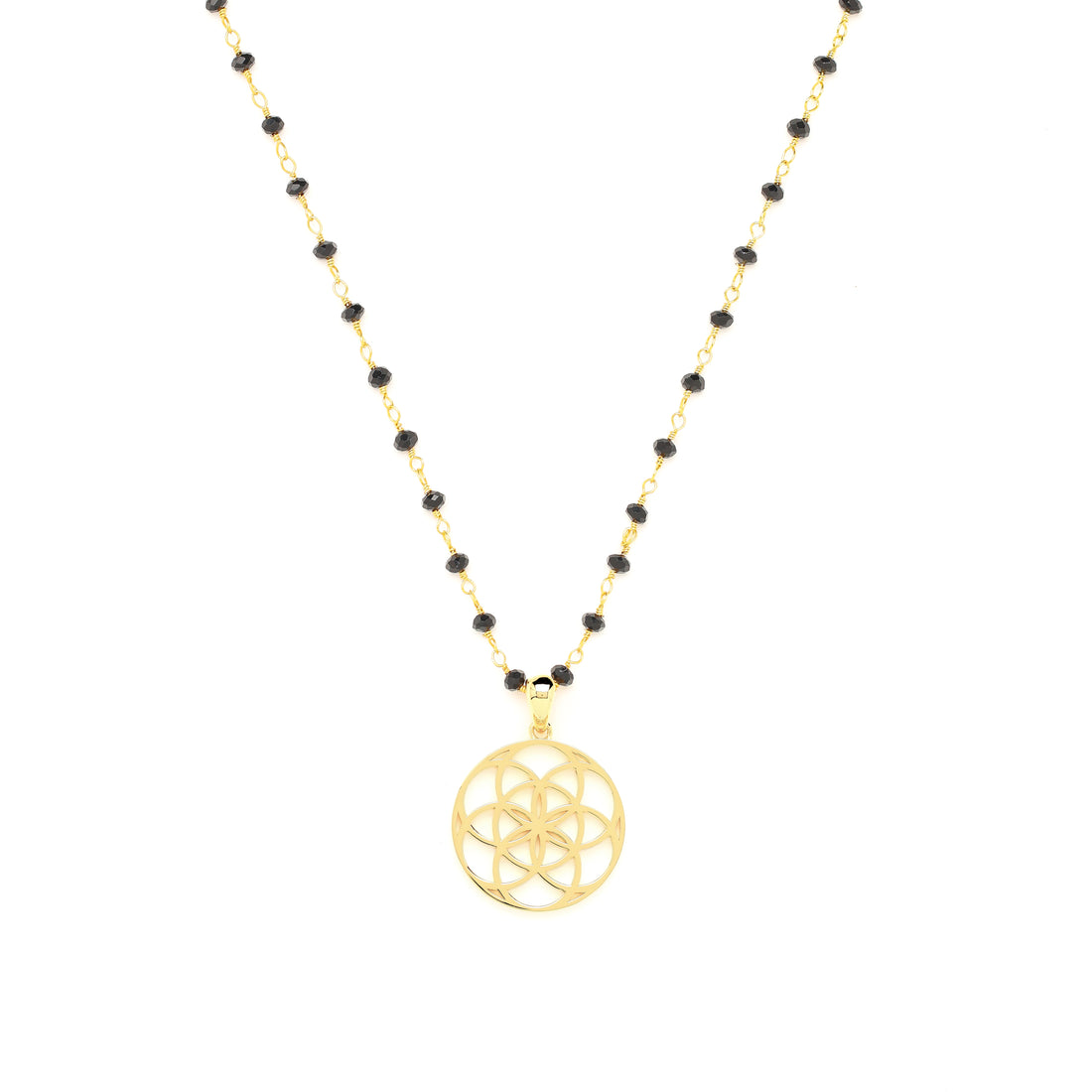 Energy Clearing Seed of Life Necklace, Black Spinel, 18k Gold Finish