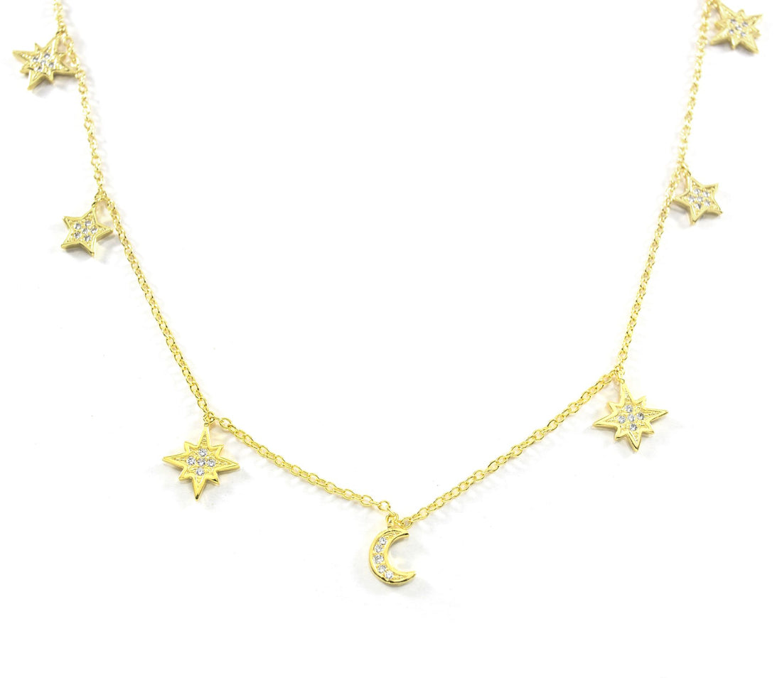 Tap into heavenly realms with our delicate and ultra-chic Moon & Stars drop charm choker...