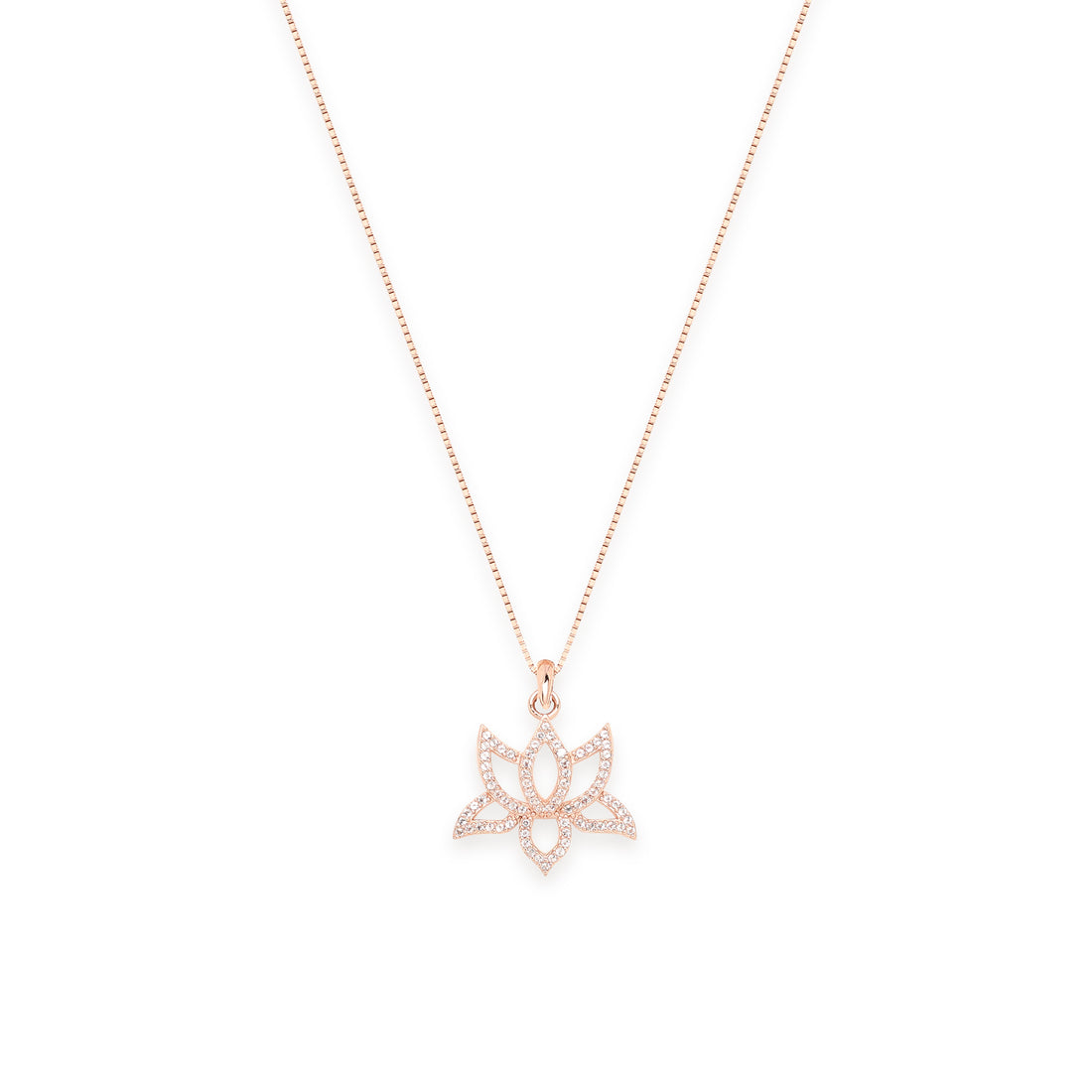 Illuminate Lotus Necklace, White Topaz Pave, Rose Gold