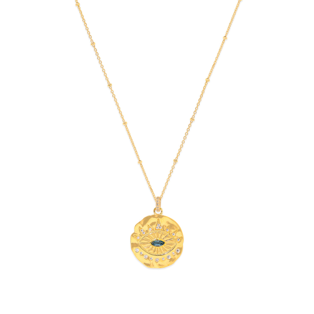 Evil Eye Protection Necklace, Blue Topaz, 18k Gold