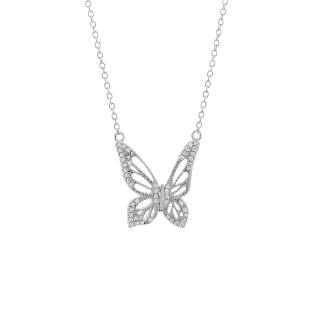 Graceful Spirit Butterfly Necklace, White Rhodium with Pave CZ Diamond