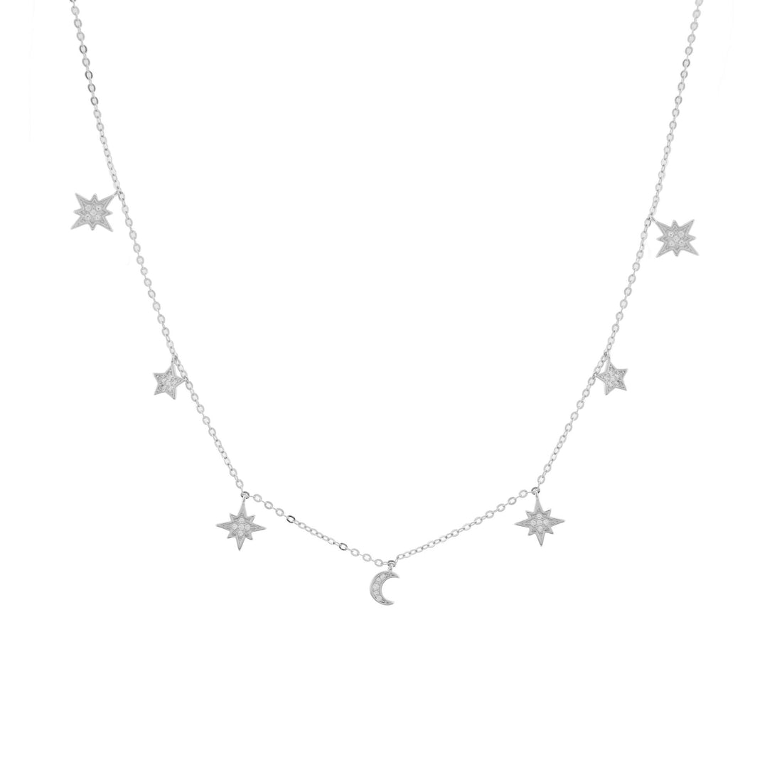 Tap into heavenly realms with our delicate and ultra-chic Moon & Stars drop charm choker...