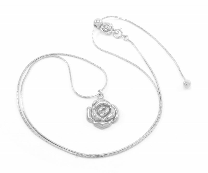 Mystic Rose Adjustable Slider Necklace, Long or Choker, White Rhodium