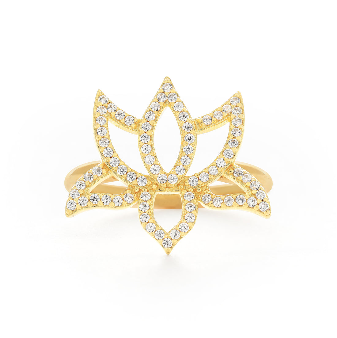 Illuminate Lotus Ring 18K Gold Plated, White Topaz Pave