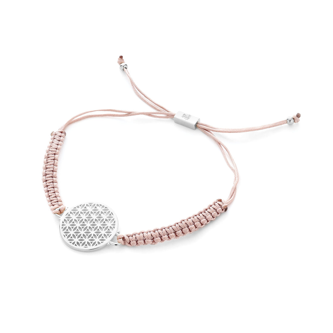 Heart in Bloom Flower of Life Woven Bracelet, Taupe, White Rhodium, One Size