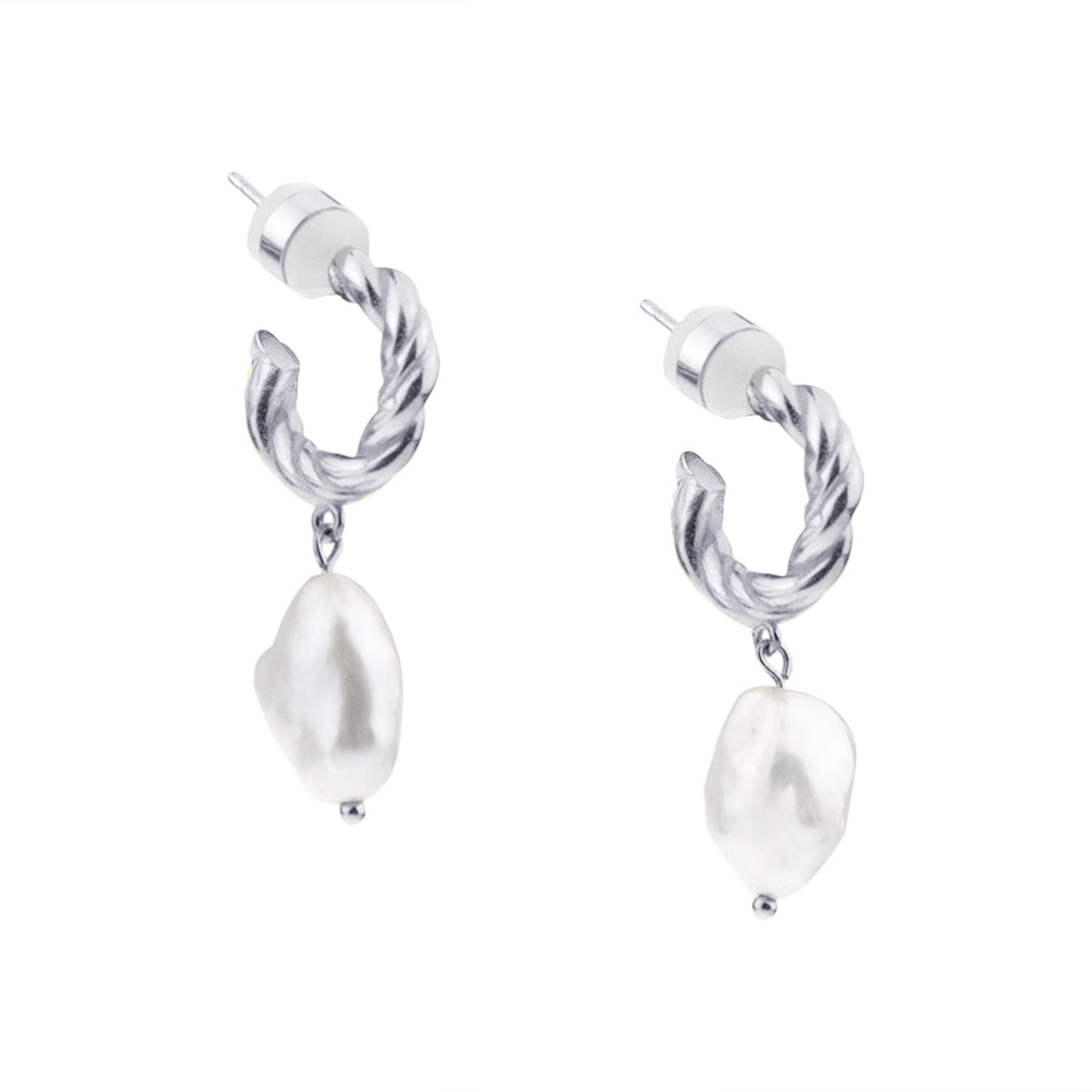 Baroque Freshwater Pearl Twisted Hoop Earring, Sterling Silver *Seen on Alessandra Ambrosio