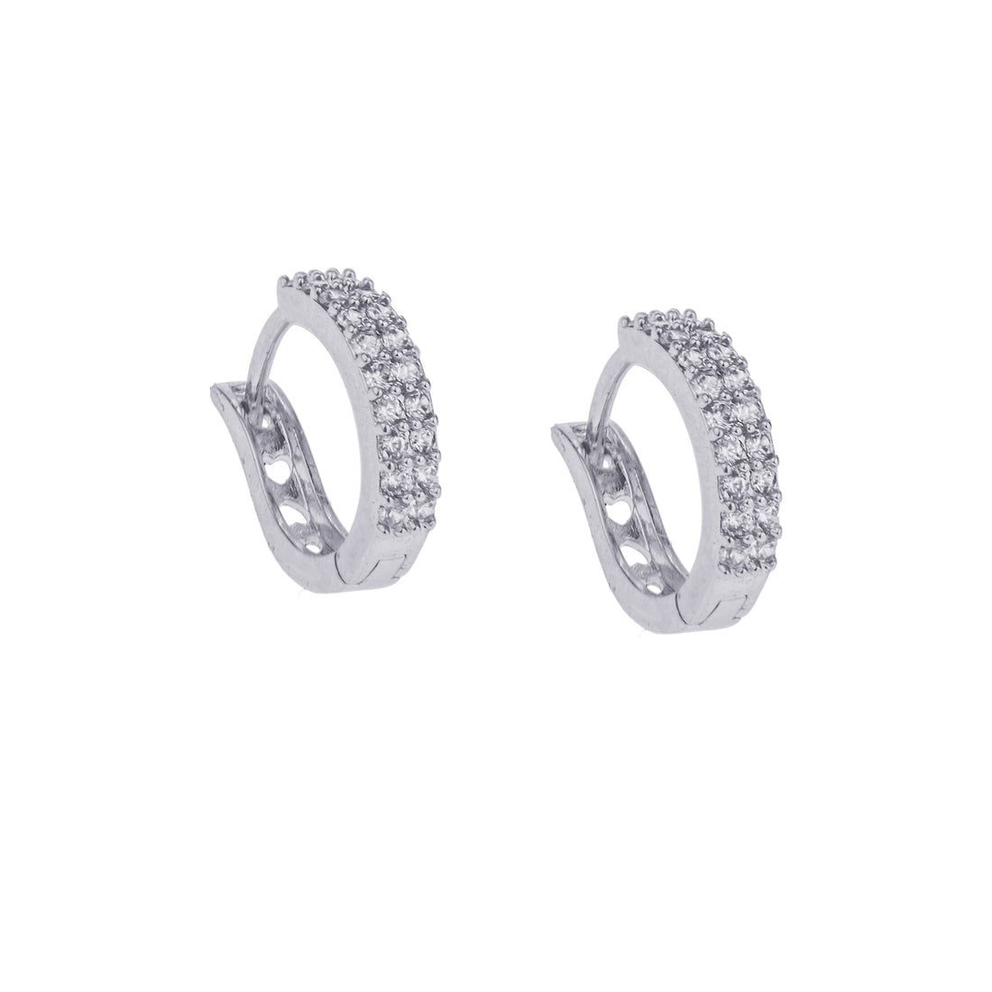 Huggie Hoop Earrings, White Rhodium with Zirconia Diamonds