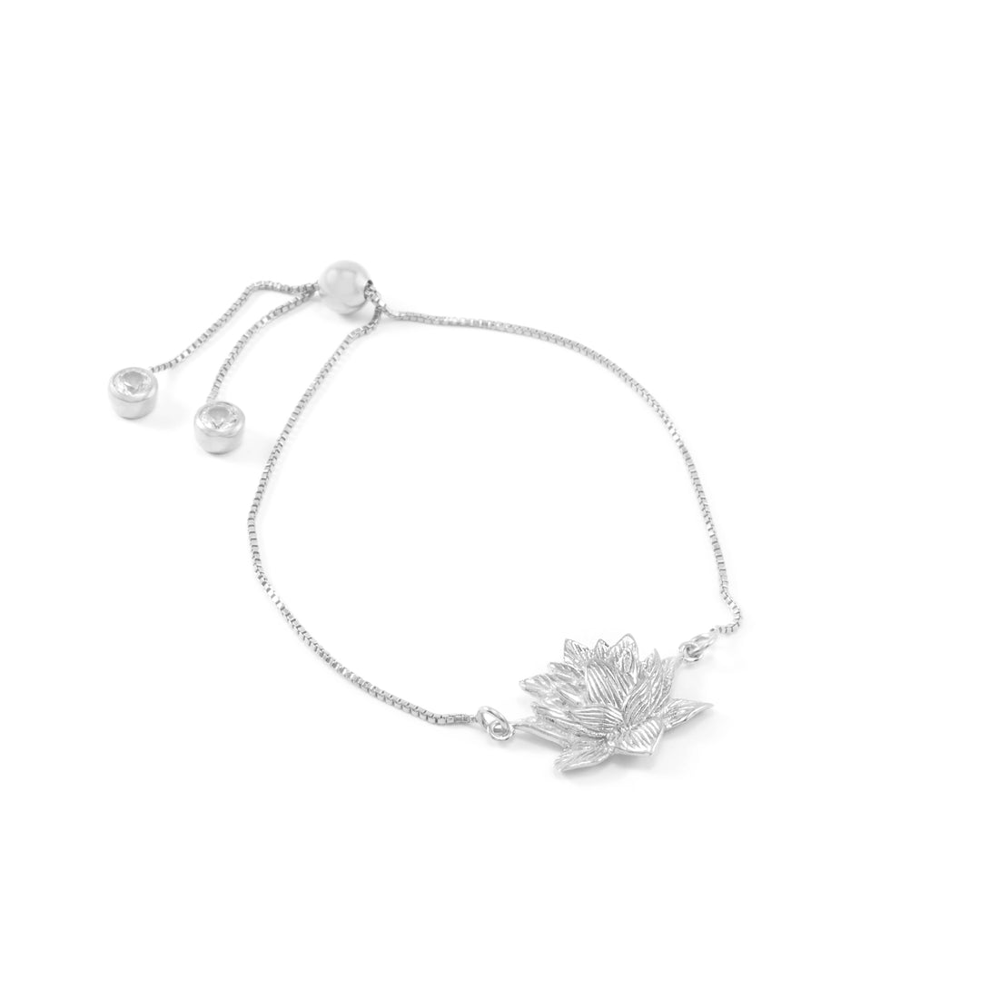 Awakened Lotus Adjustable Bracelet, White Rhodium