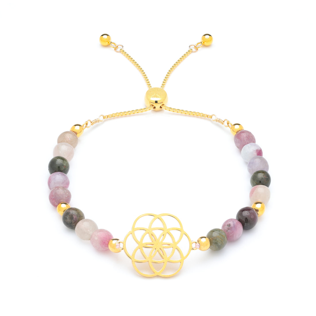 Gratitude for Creation Seed of Life Tourmaline Bracelet, 18k Gold