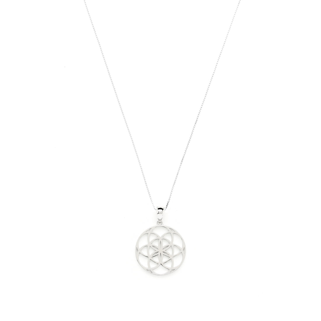 Seed of Life Abundance Necklace Sterling Silver, White Rhodium