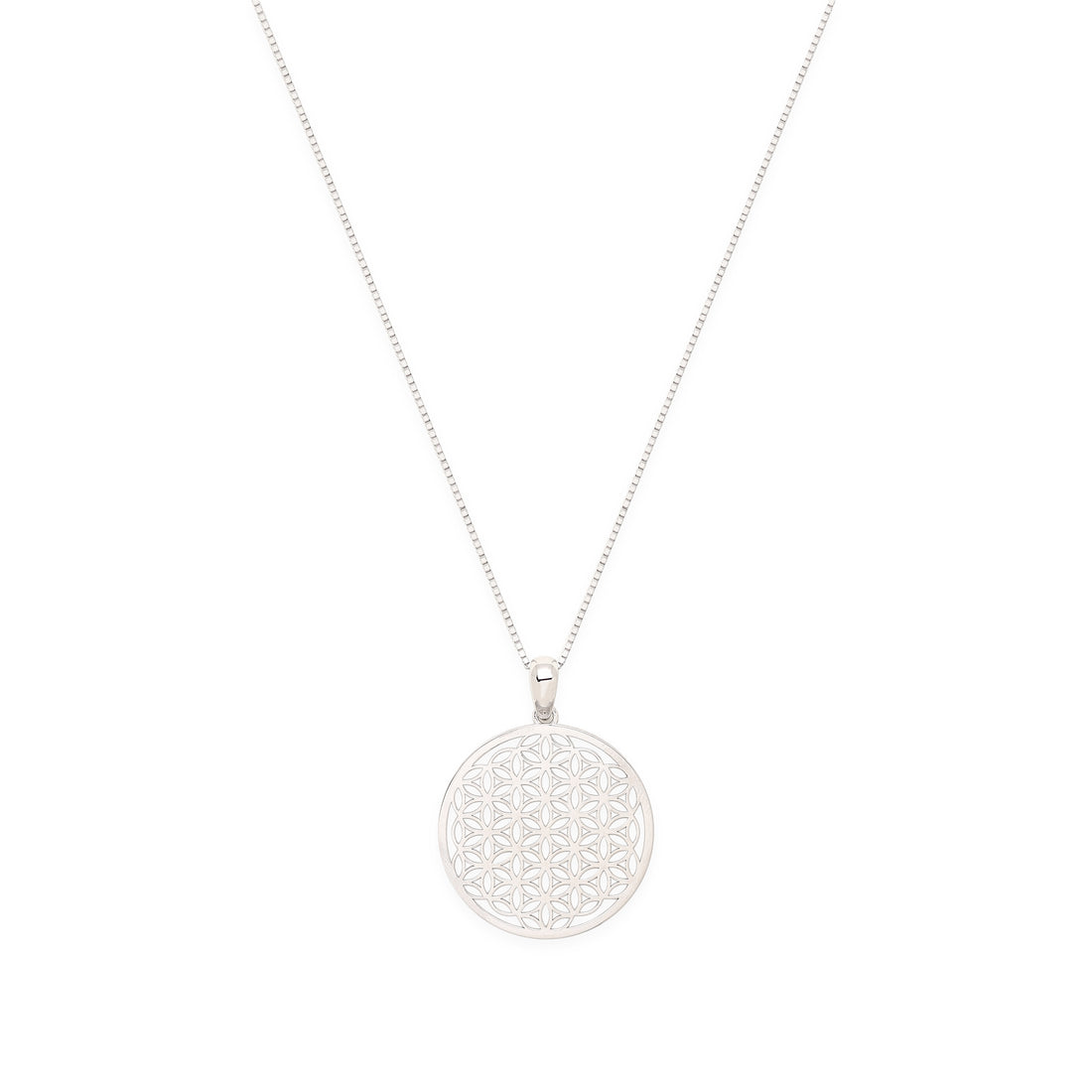 Flower of Life Spiritual Expansion Necklace, White Rhodium Over Sterling Silver, 16+3"