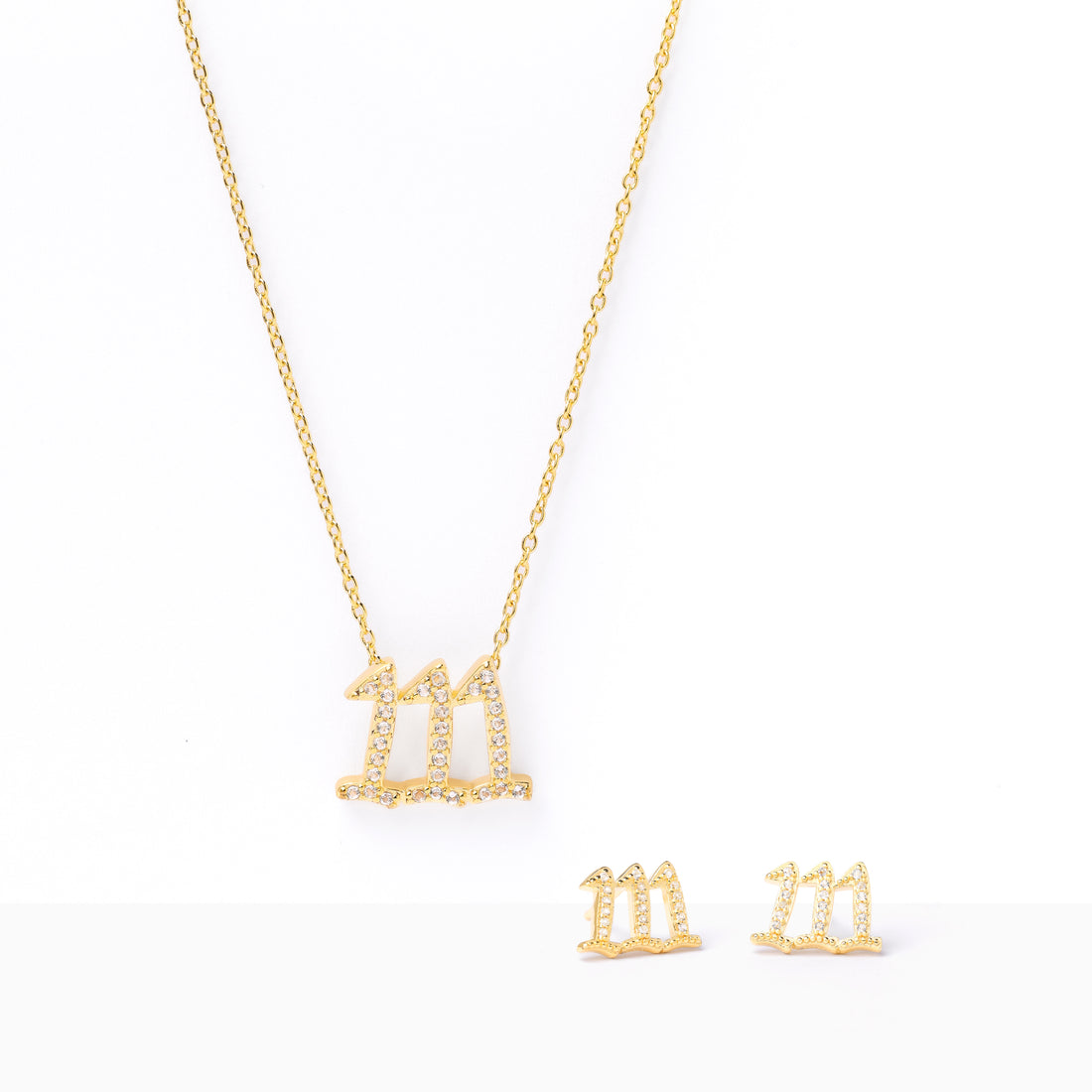 111 Angel Number Manifestation Set, Necklace and Earrings, White Topaz