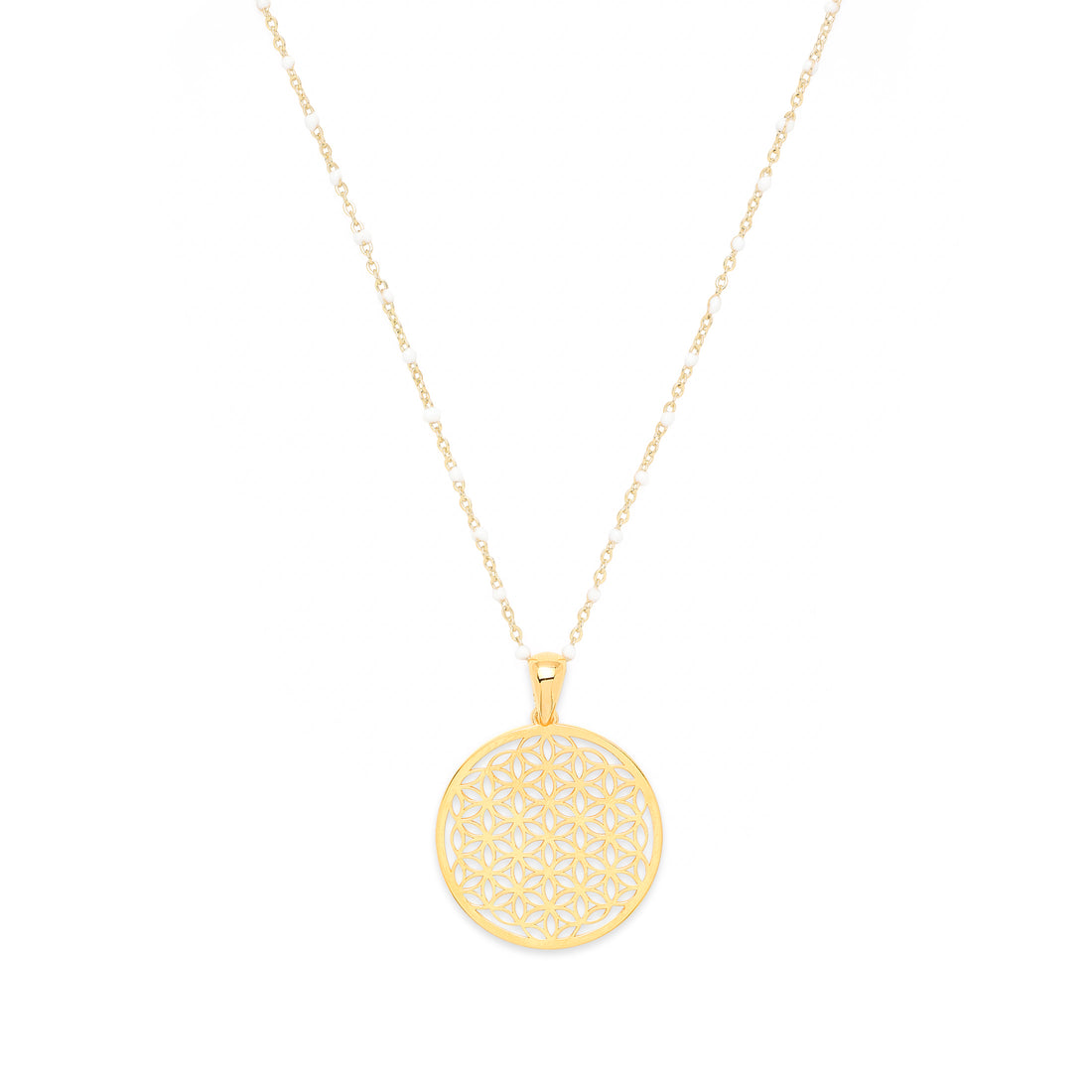 Peaceful Heart Flower of Life Necklace, White Enamel, 18K Gold