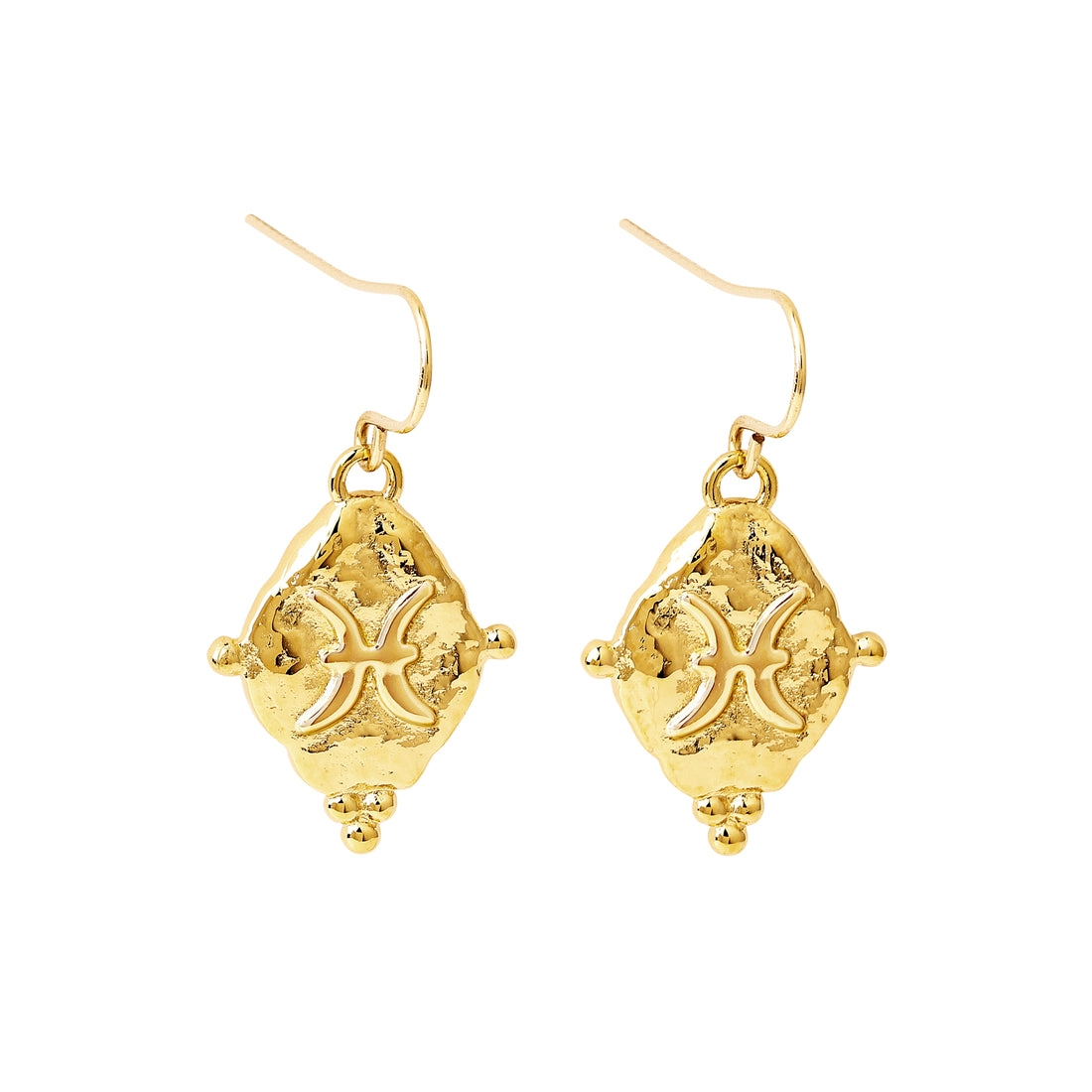 Pisces Vintage-Style Dangle Earrings, 18k Gold Plated