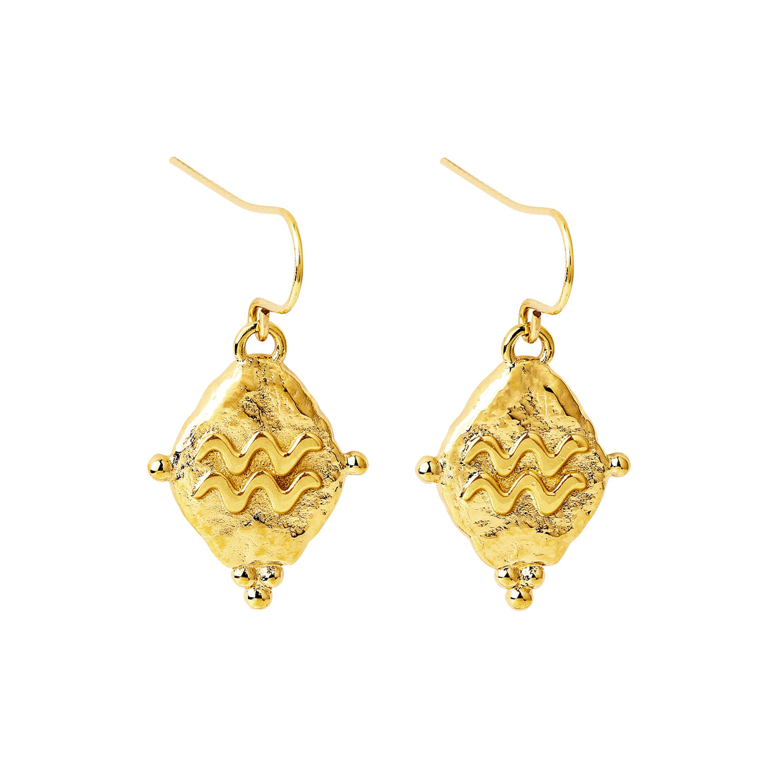 Aquarius Vintage-Style Dangle Earrings, 18k Gold Plated