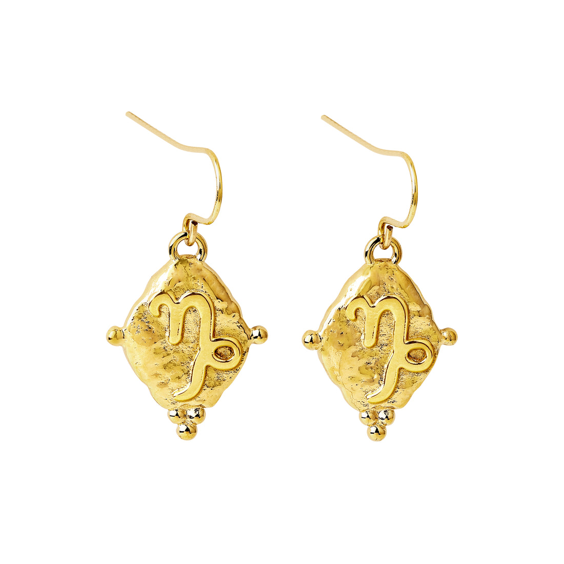 Capricorn Vintage-Style Dangle Earrings, 18k Gold Plated