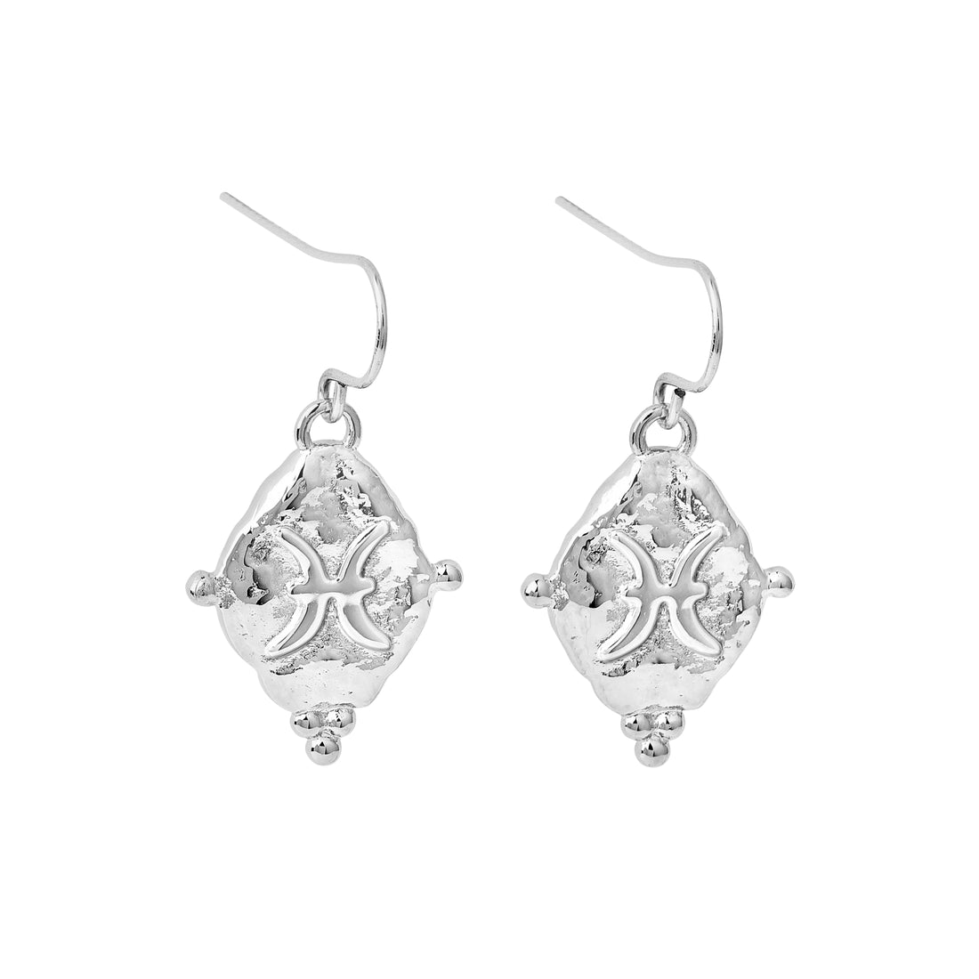 Pisces Vintage-Style Dangle Earrings, White Rhodium Plated