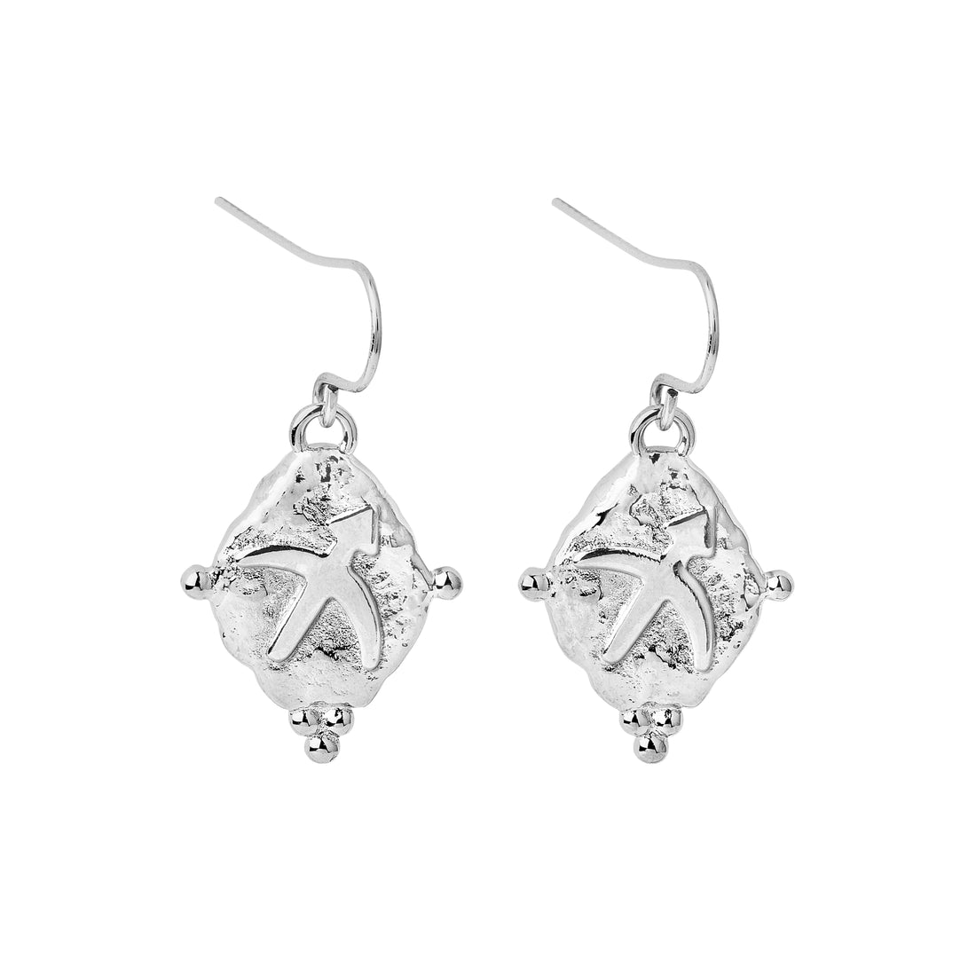 Sagittarius Vintage-Style Dangle Earrings, White Rhodium Plated