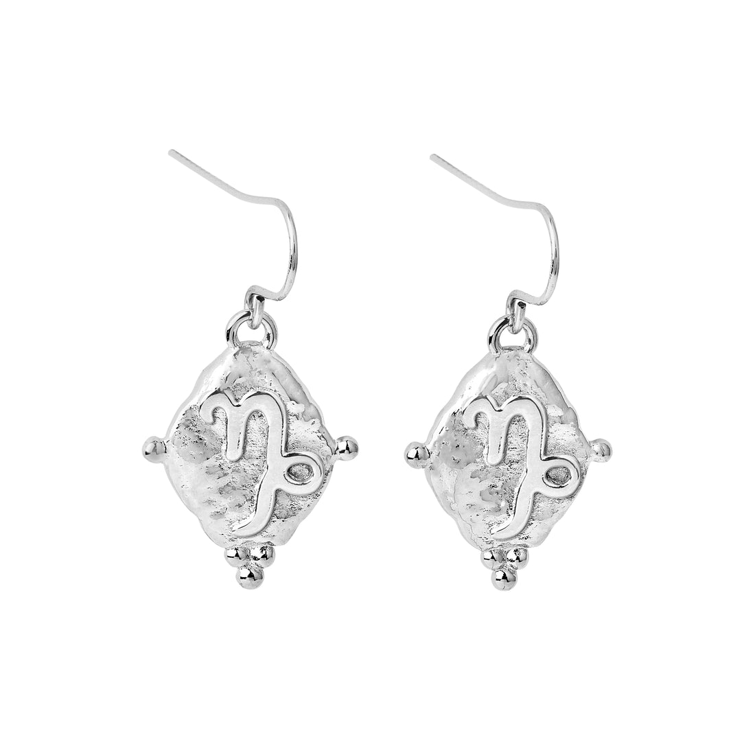 Capricorn Vintage-Style Dangle Earrings, White Rhodium Plated