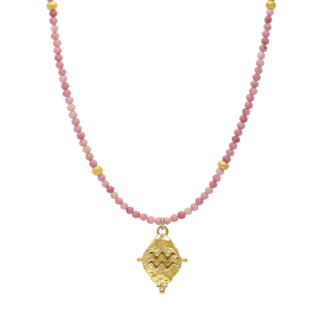 Aquarius Gemstone Choker Necklace, Rhodonite, 18k Gold Plated
