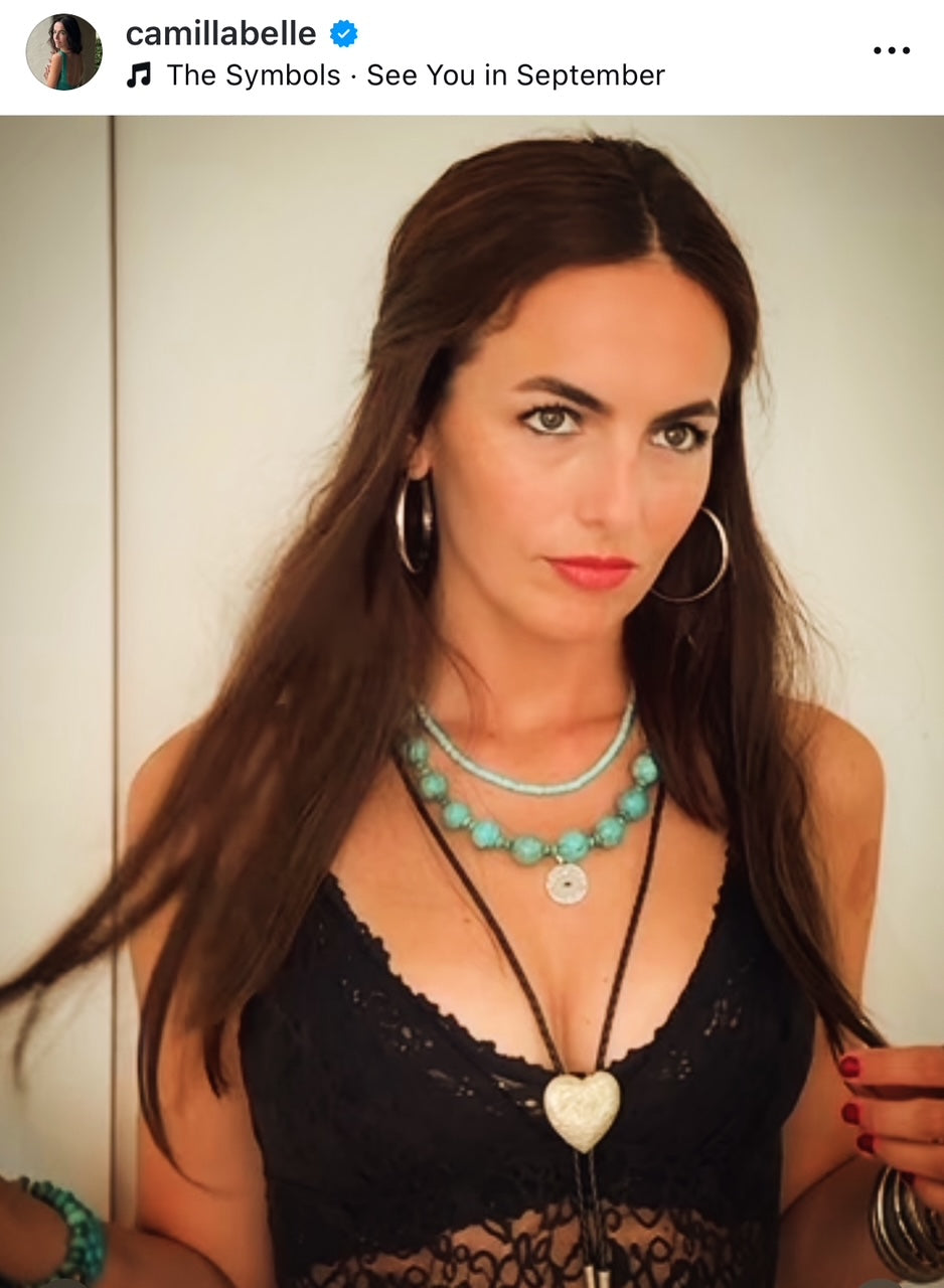 Camilla Belle wears Seven Saints' Evil Eye Protection Necklace in White Rhodium, September 2025