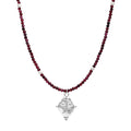 Aries Gemstone Choker Necklace, Red Garnet, White Rhodium Plated