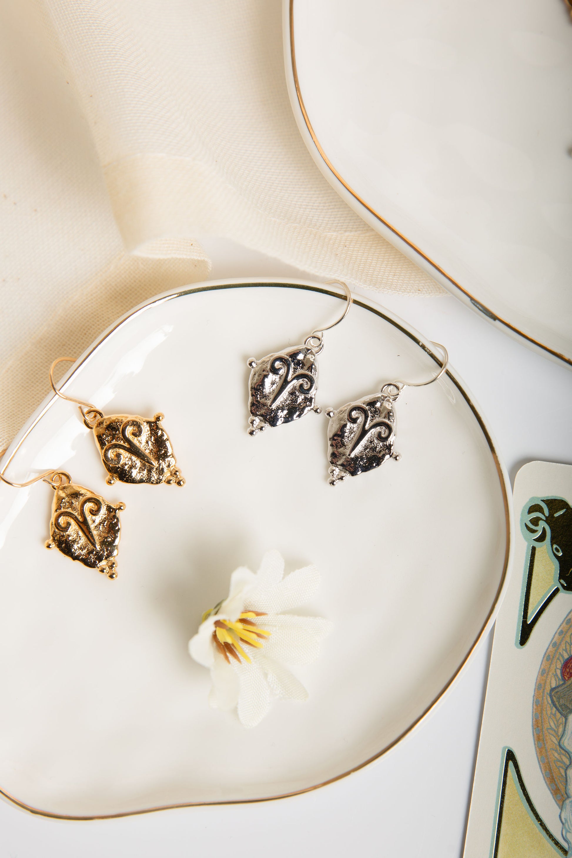 Radiant and bold, the Aries Vintage Dangle Earrings capture the fearless energy of the first fire sign. Crafted with 18k gold plating over brass, these earrings glow with timeless warmth, embodying Aries’ natural magnetism and fiery confidence. The antique Aries symbol design honors the spirit of the pioneer — strong, daring, and endlessly inspired to blaze new trails.