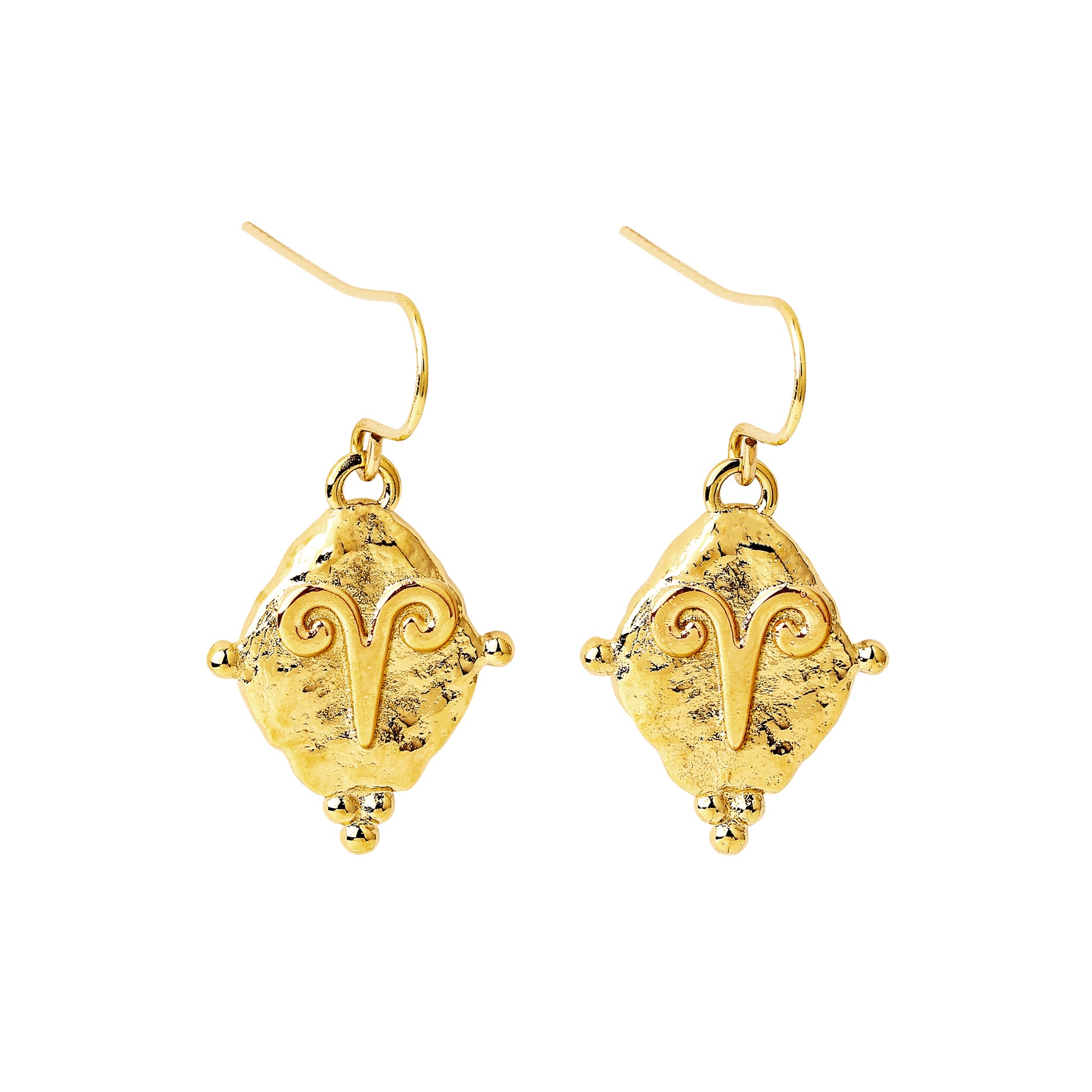 Aries Vintage-Style Dangle Earrings, 18k Gold Plated with Antique Zodiac Symbol