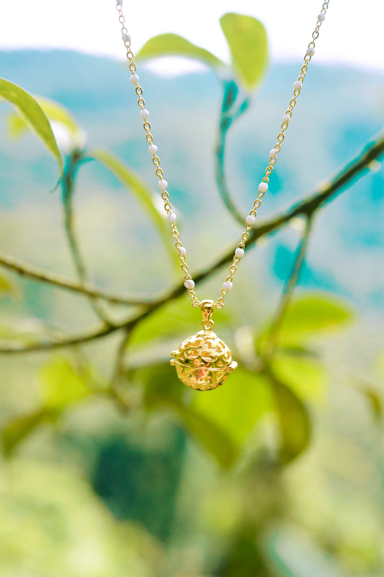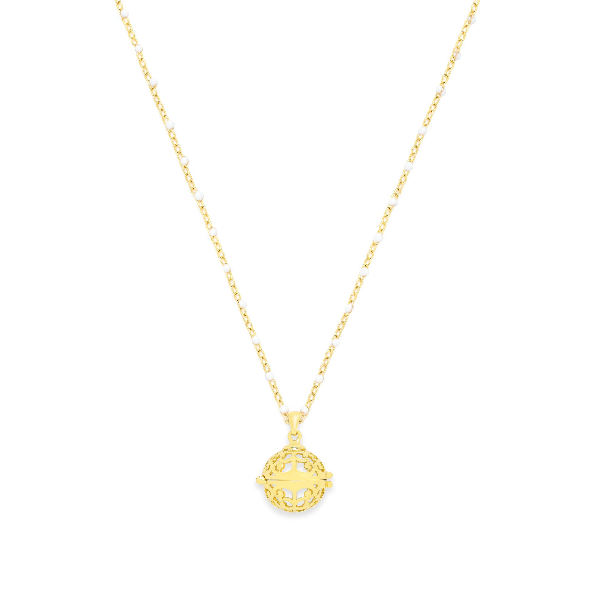 Aromatherapy Diffuser Locket, Ivory Enamel Beaded Chain, 18k Gold