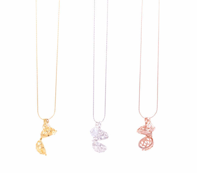 Aromatherapy oils will diffuse strongly, and when you need to top up, just open the locket and reapply.