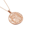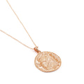 Athena is the revered Greek goddess of wisdom and the patron goddess of heroic endeavor. Channel her power, authority, and fierce spirit with our hand carved antique coin pendant in rose gold plated sterling silver.