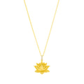 - Lotus charm measures 20 mm across and hangs 10 mm down from a CZ pave bail.