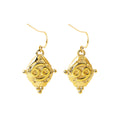 Cancer Vintage-Style Dangle Earrings, 18k Gold Plated with Antique Zodiac Symbol