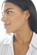 This eye-catching and minimalist necklace utilizes the power of color therapy to heal and activate your chakras. 14 zirconia stones represent the 7 major chakras of the body: