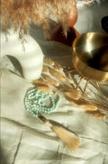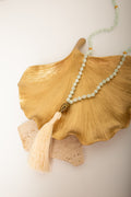 Goddess of Freedom and Wisdom 108 Bead Mala, Pale Green Moonstone