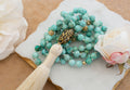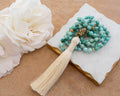 Call on good luck and protection energy with our Good Fortune mala, hand knotted in our studio from 6 mm smooth round Peruvian Turquoise stones.