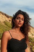 Hung on an adjustable white rhodium plated sterling silver chain with length options at 16, 17, and 18 inches.