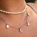 Tap into heavenly realms with our delicate and ultra-chic Moon & Stars drop charm choker necklace.